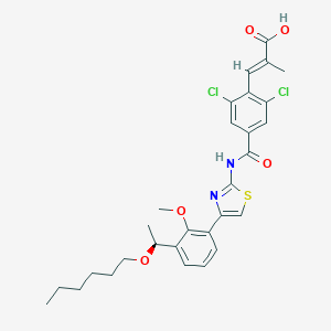 InChI=1S/C29H32Cl2N2O5S/c1-5-6-7-8-12-38-18(3)20-10-9-11-21(26(20)37-4)25-16-39-29(32-25)33-27(34)19-14-23(30)22(24(31)15-19)13-17(2)28(35)36/h9-11,13-16,18H,5-8,12H2,1-4H3,(H,35,36)(H,32,33,34)/b17-13+/t18-/m0/s1