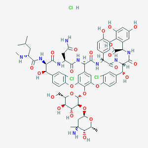 CC1C(C(CC(O1)OC2C(C(C(OC2OC3=C4C=C5C=C3OC6=C(C=C(C=C6)C(C(C(=O)NC(C(=O)NC5C(=O)NC7C8=CC(=C(C=C8)O)C9=C(C=C(C=C9O)O)C(NC(=O)C(C(C1=CC(=C(O4)C=C1)Cl)O)NC7=O)C(=O)O)CC(=O)N)NC(=O)C(CC(C)C)NC)O)Cl)CO)O)O)(C)N)O.Cl